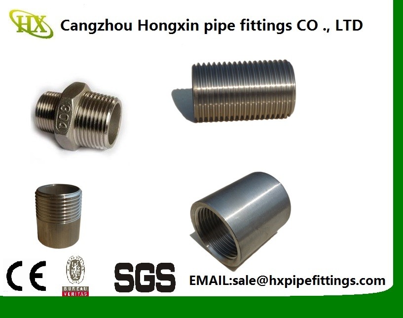 आपूर्ति 304 316 316Lस्टेनलेस स्टीलपाइप फिटिंग बैरल निप्पल/डबल थ्रेड निप्पल,